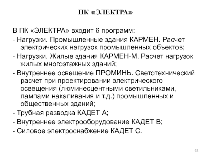 В среде ElectriCS ECP выполняются следующие виды расчетов: