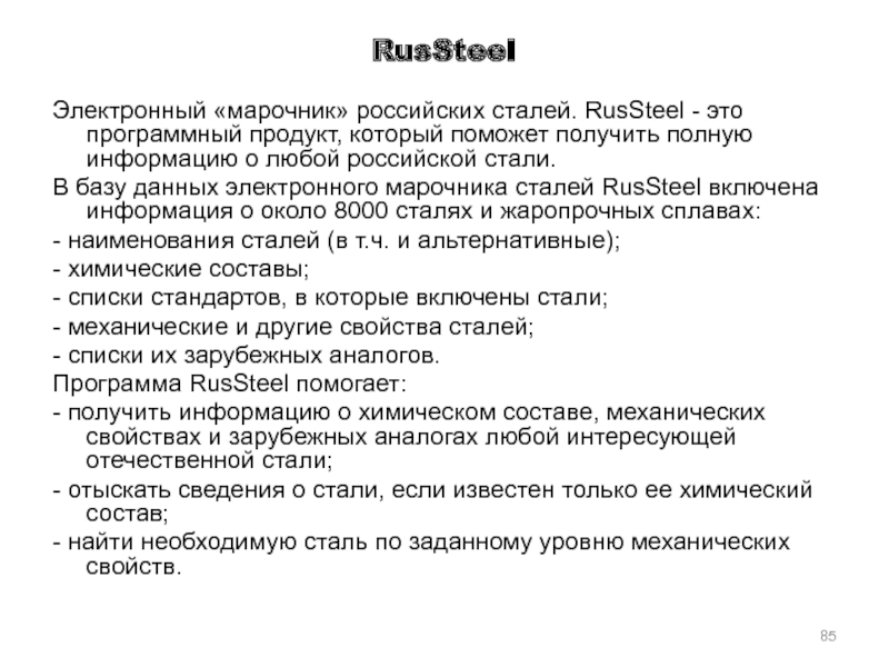 Электронный «марочник» российских сталей. RusSteel - это программный продукт, который