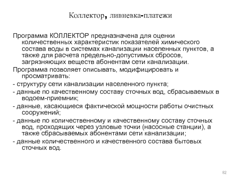 Программа КОЛЛЕКТОР предназначена для оценки количественных характеристик показателей химического