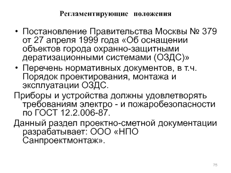 Слайд 79Проектирование раздела Охранно-Защитная Дератизационная Система (ОЗДС)