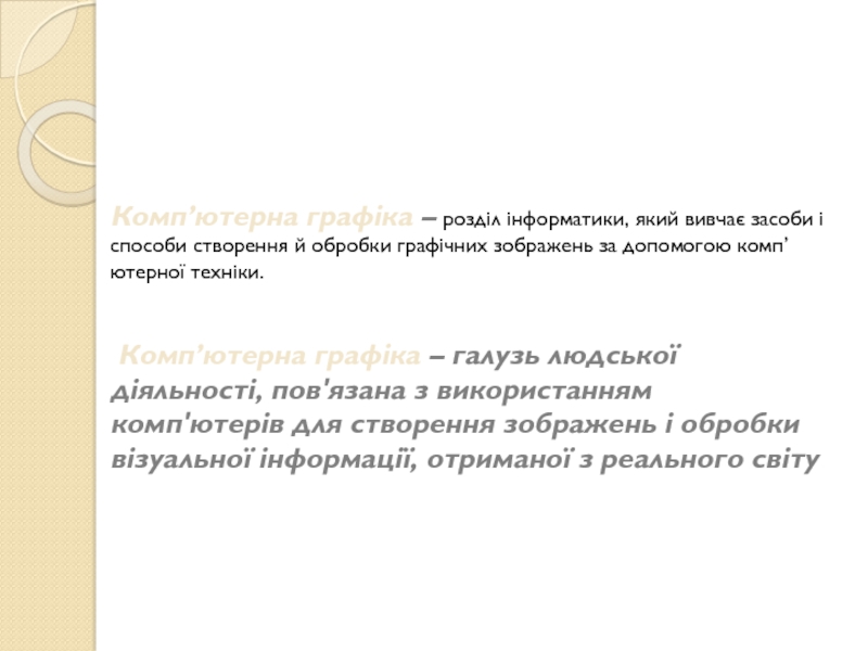 Слайд 2Комп’ютерна графіка – розділ інформатики, який вивчає засоби і способи