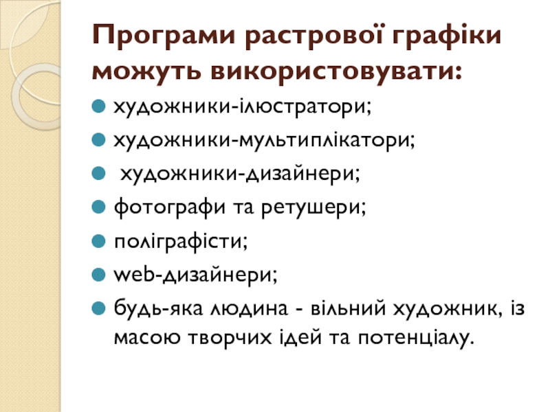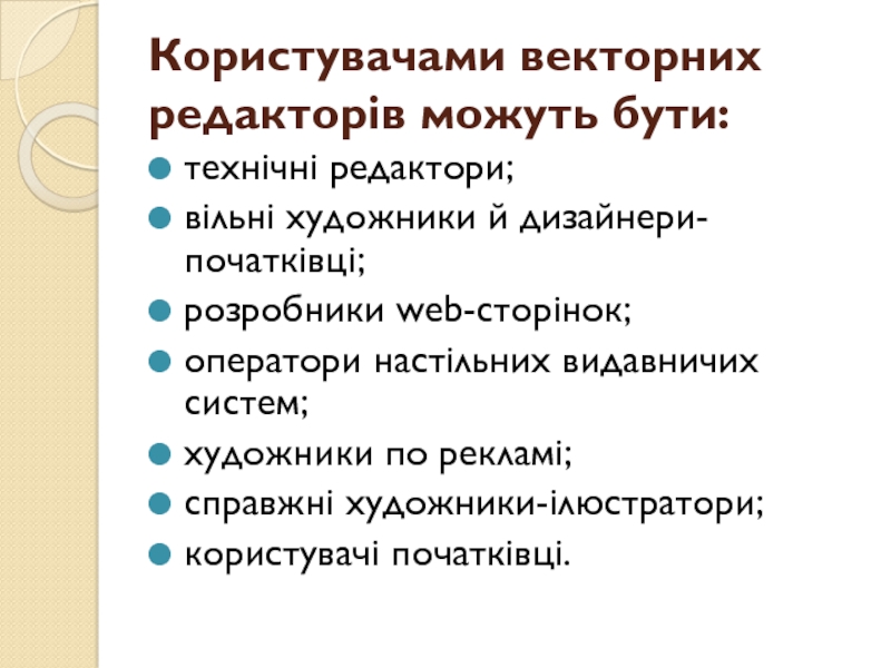 Слайд 28Користувачами векторних редакторів можуть бути: