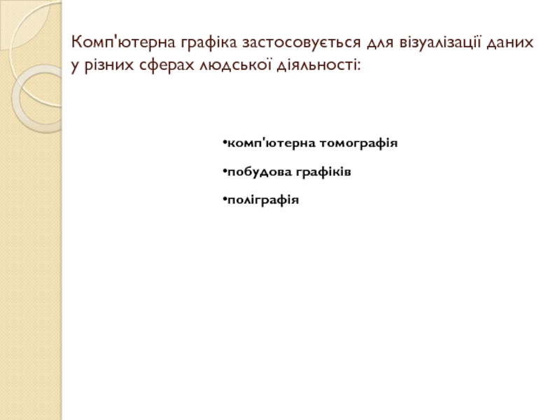 Слайд 5Комп'ютерна графіка застосовується для візуалізації даних у різних сферах людської