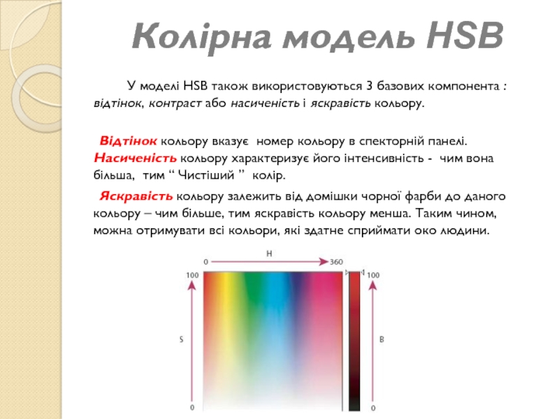 У моделі HSB також використовуються 3 базових компонента
