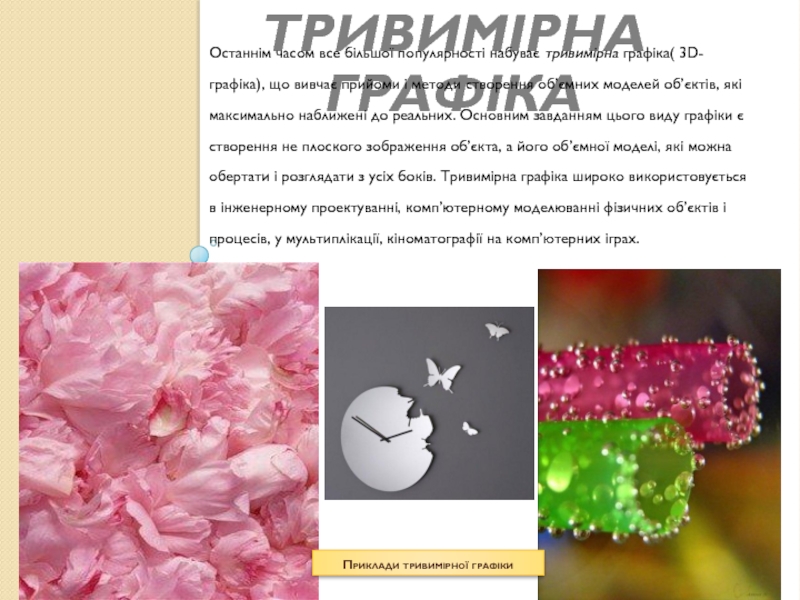 Останнім часом все більшої популярності набуває тривимірна графіка( 3D-