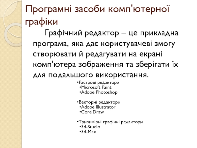Слайд 25Програмні засоби комп'ютерної графіки