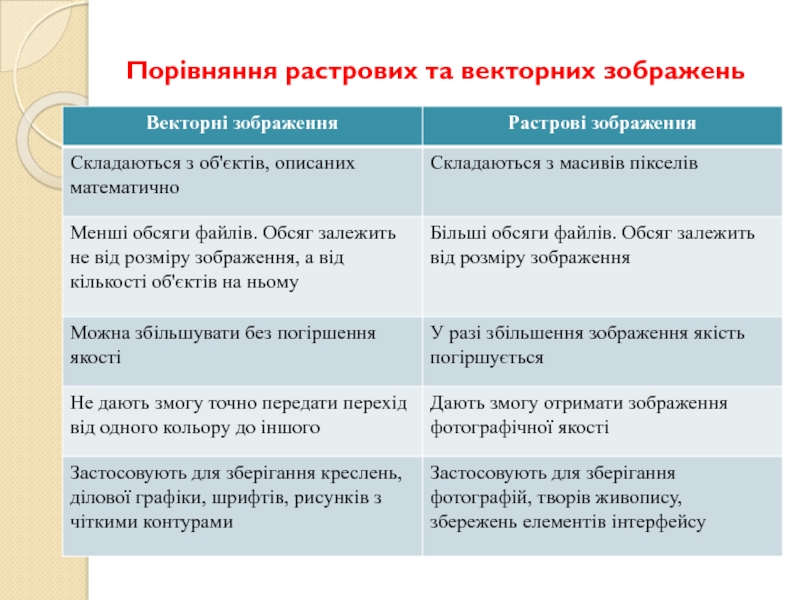 Слайд 15Порівняння растрових та векторних зображень