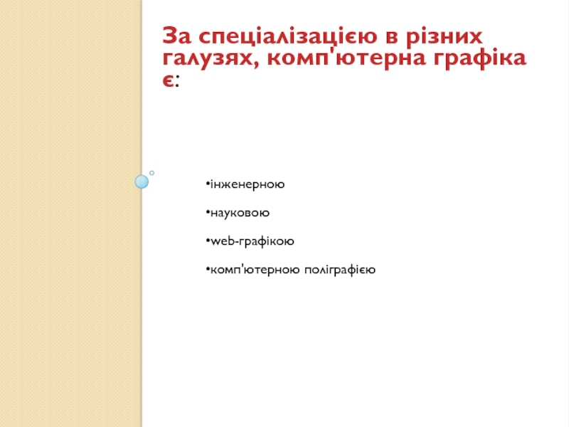 Слайд 6За спеціалізацією в різних галузях, комп'ютерна графіка є: