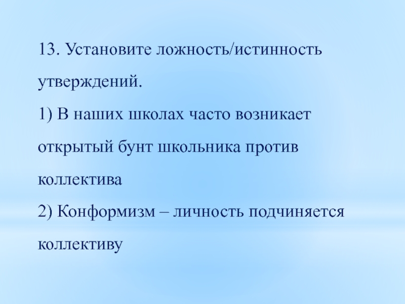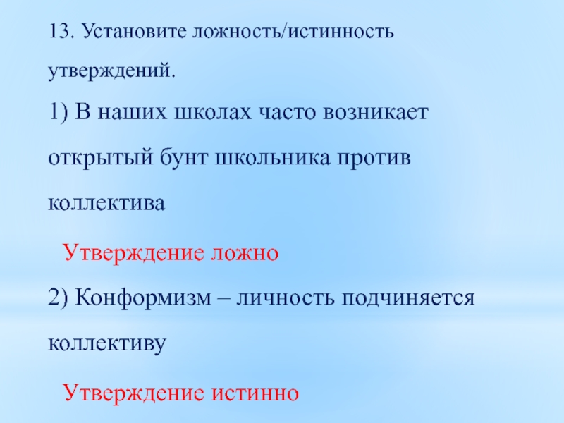 Слайд 2613. Установите ложность/истинность утверждений.