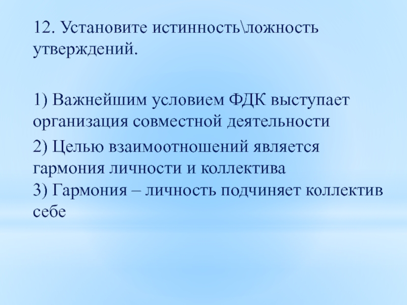 Слайд 4012. Установите истинность/ложность утверждений.