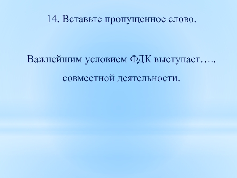 Важнейшим условием ФДК выступает…..совместной деятельности.