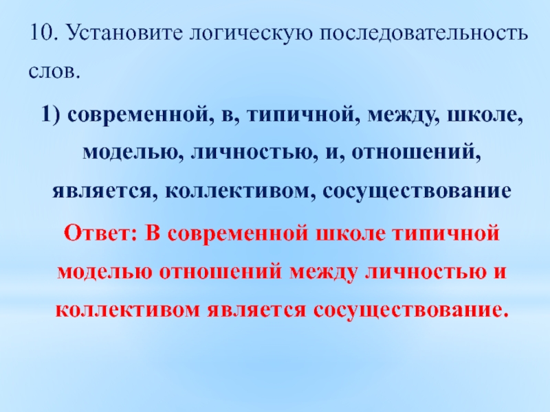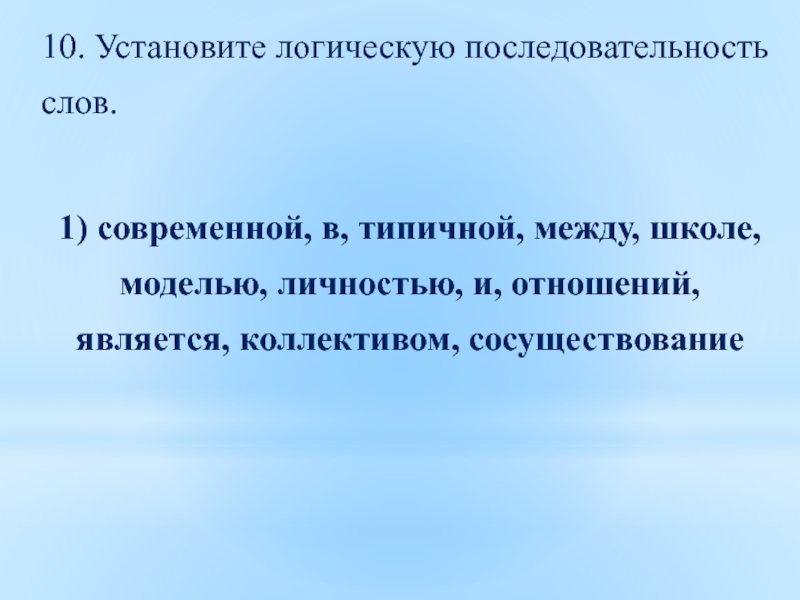 Слайд 2310. Установите логическую последовательность слов.