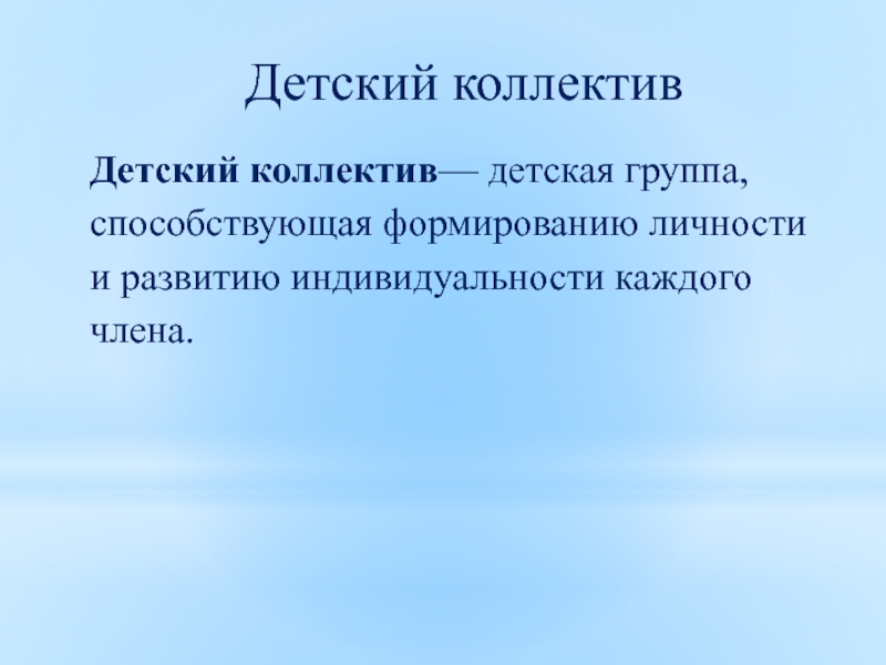 Детский коллектив— детская группа, способствующая формированию личности и развитию