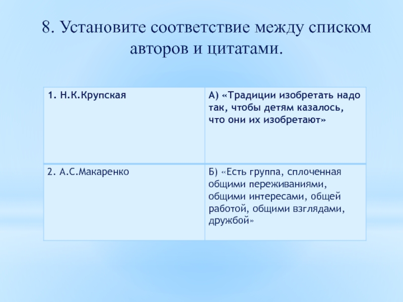 Слайд 368. Установите соответствие между списком авторов и цитатами.