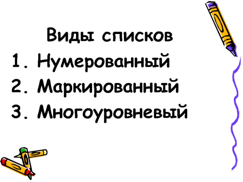Виды списковНумерованныйМаркированныйМногоуровневый