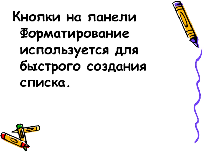 Слайд 9Кнопки на панели Форматирование используется для быстрого создания списка.