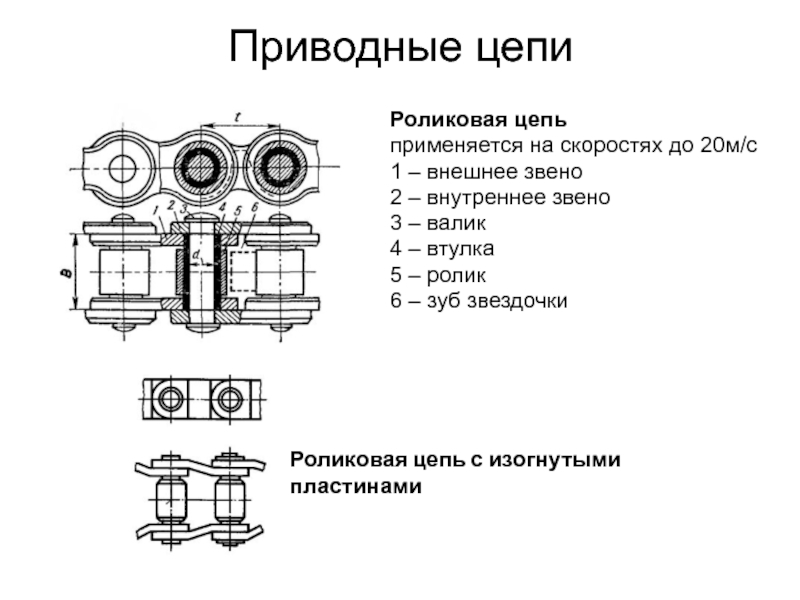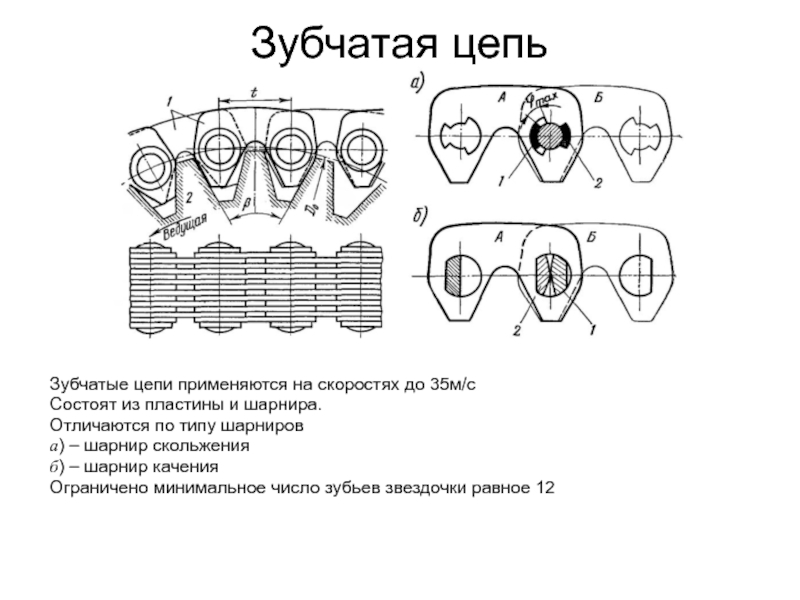 Слайд 75Зубчатые цепи применяются на скоростях до 35м/с