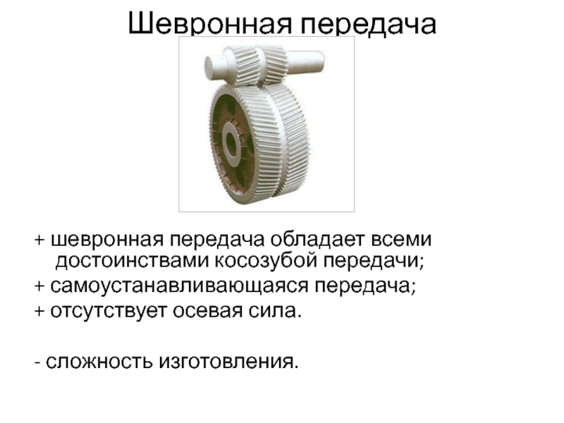 + шевронная передача обладает всеми достоинствами косозубой передачи;