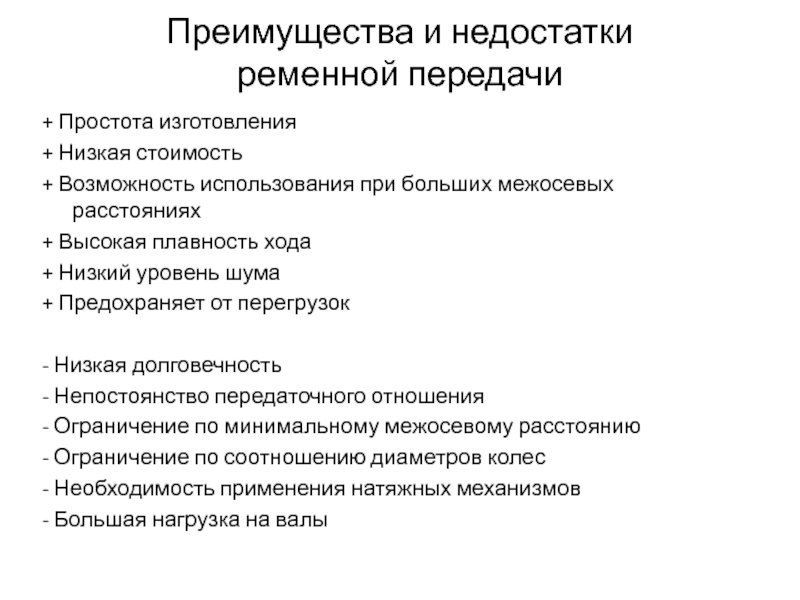 малые силы, действующие на валы, так как нет необходимости в большом начальном натяжении;