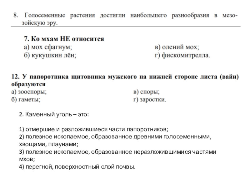 полезное ископаемое, образованное древними голосеменными, хвощами, плаунами;