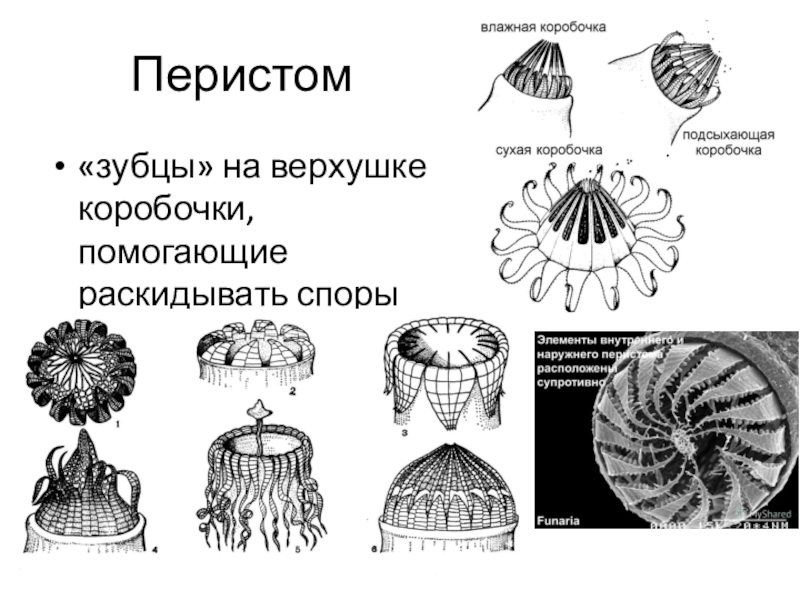 «зубцы» на верхушке коробочки, помогающие раскидывать споры