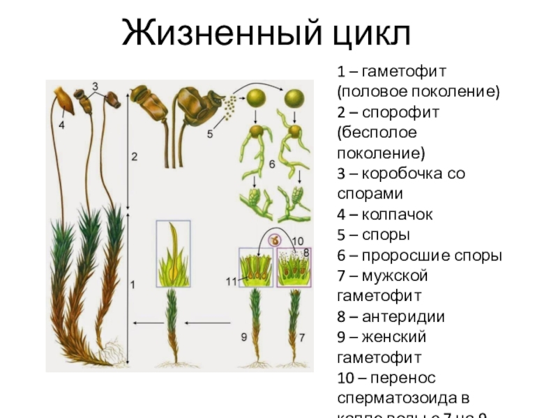 Оплодотворение только в водной среде, сперматозоиды имеют жгутики