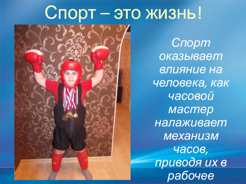 Спорт – это жизнь!Спорт оказывает влияние на человека, как часовой мастер налаживает механизм часов, приводя их в