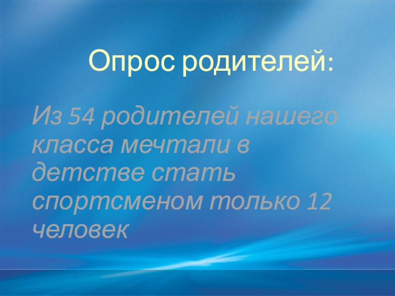 Опрос родителей:Из 54 родителей нашего класса мечтали в детстве стать спортсменом только 12 человек