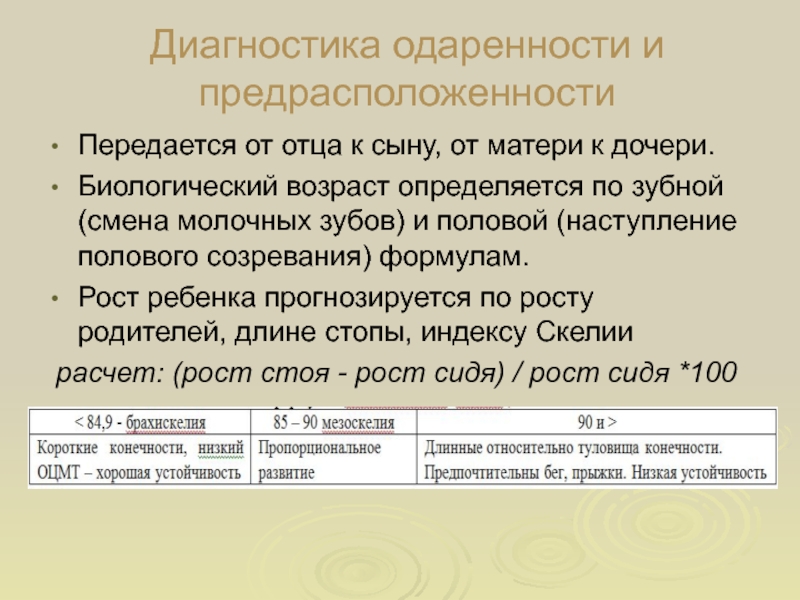 Рост ребенка прогнозируется по росту родителей, длине стопы, индексу Скелии
