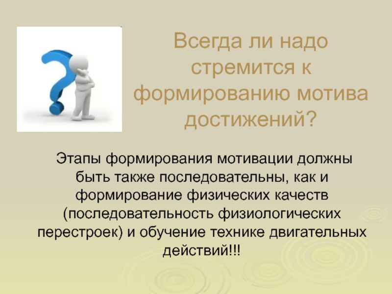 мотивации должны быть также последовательны, как и формирование физических качеств