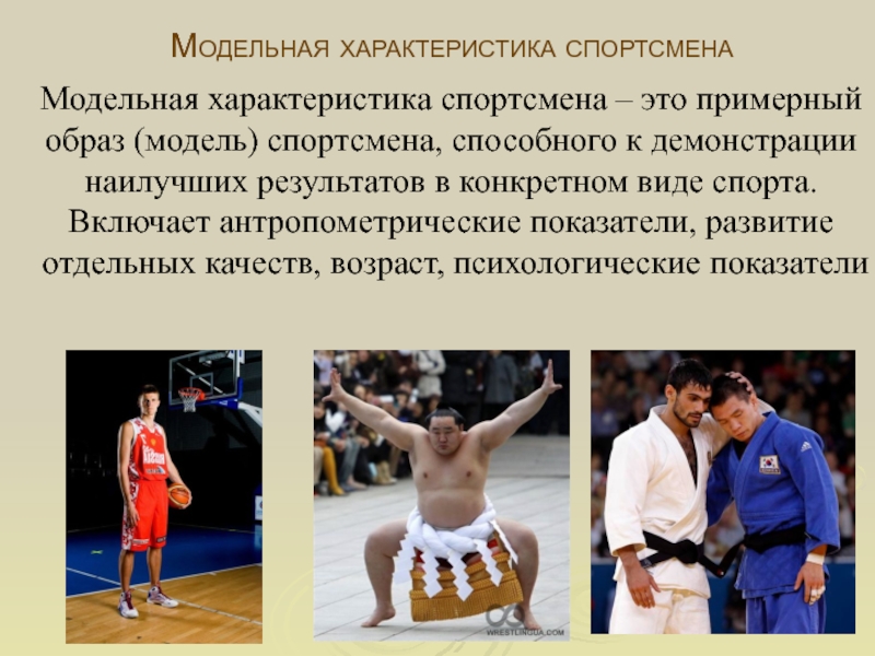 Слайд 45Модельная характеристика спортсмена – это примерный образ (модель) спортсмена, способного