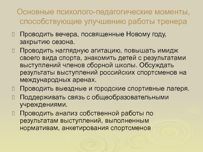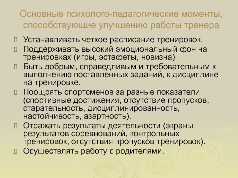 спортсменов от неисполнения желаний, избегать ухудшения здоровья в связи с несоответствием тренировочных нагрузок их возможностям