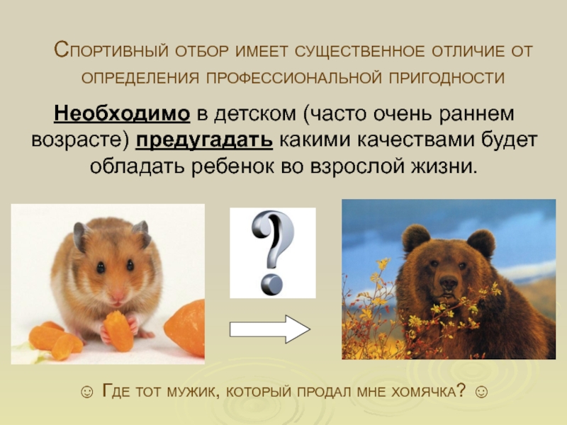 Слайд 41Спортивный отбор – поиск одаренных детей для данного вида спорта
