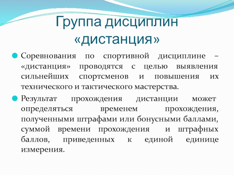 Слайд 13Группа дисциплин «дистанция»