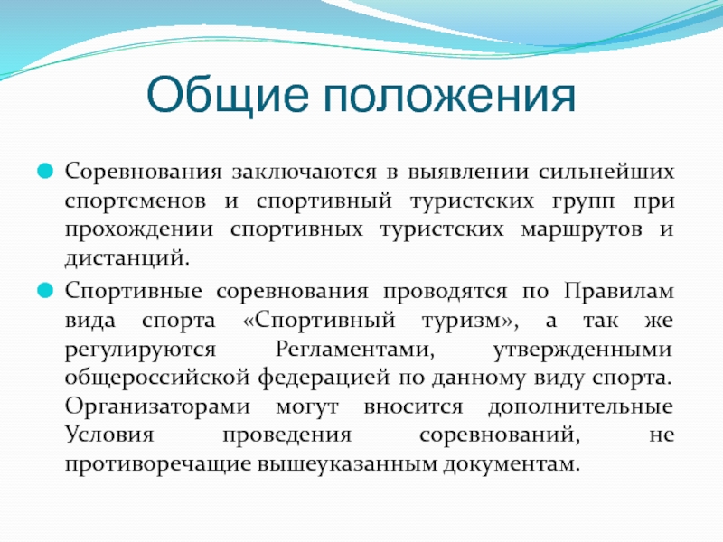 Соревнования заключаются в выявлении сильнейших спортсменов и спортивный туристских