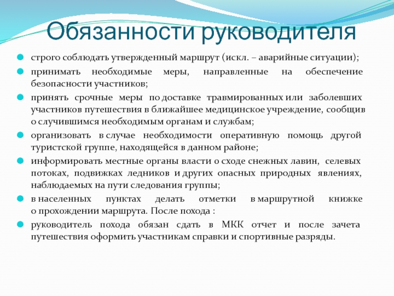 Слайд 19 Обязанности руководителя