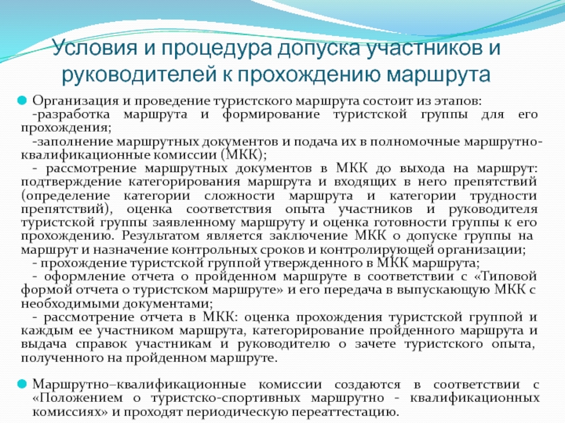 Слайд 7Условия и процедура допуска участников и руководителей к прохождению маршрута