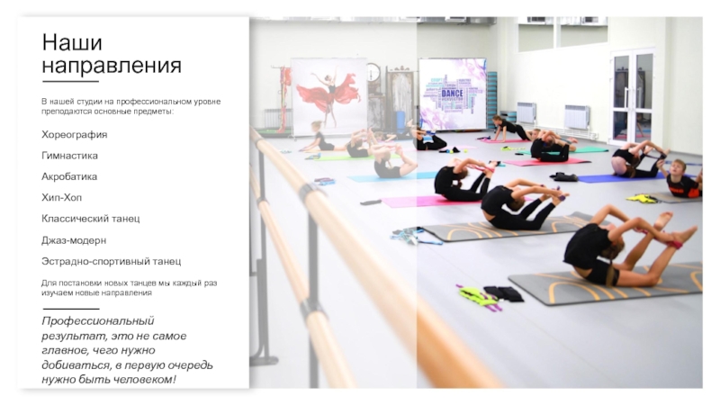 Спустя 10 лет работы в школе занимаются более 150 детей. Преподают 10 педагогов по художественной и спортивной гимнастике, акробатике, классическому танцу, хип-хопу