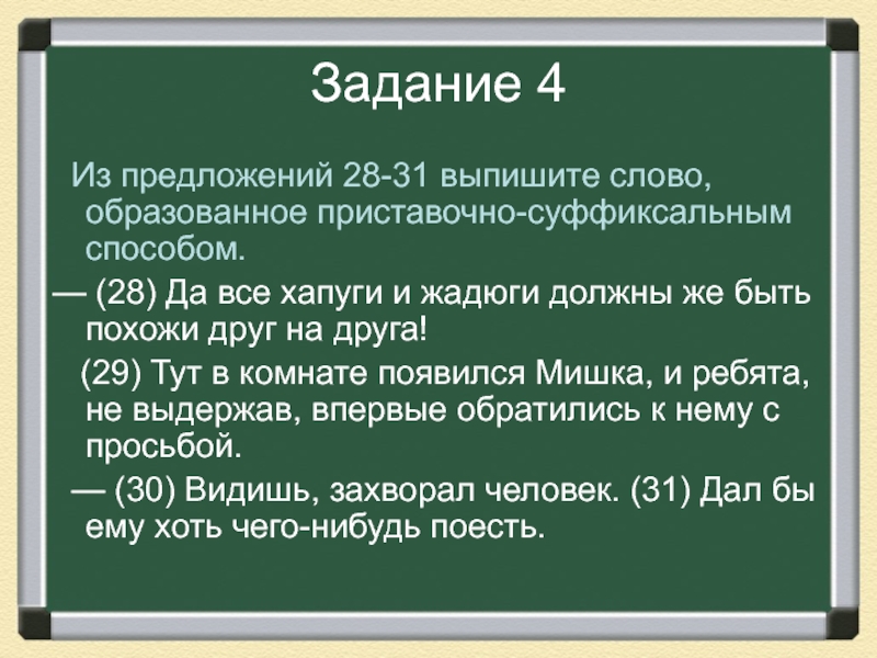 Из предложений 28-31 выпишите слово, образованное приставочно-суффиксальным способом.