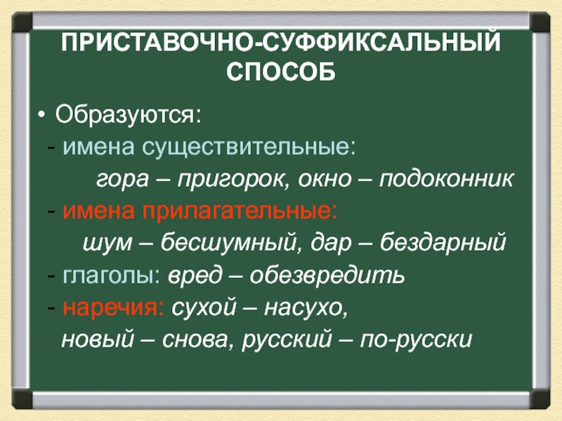 Слайд 8ПРИСТАВОЧНО-СУФФИКСАЛЬНЫЙ СПОСОБ