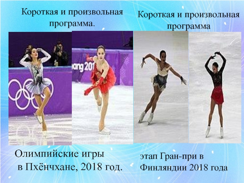 проходят в категориях мужское и женское одиночное катание, парное фигурное катание и танцы на льду.