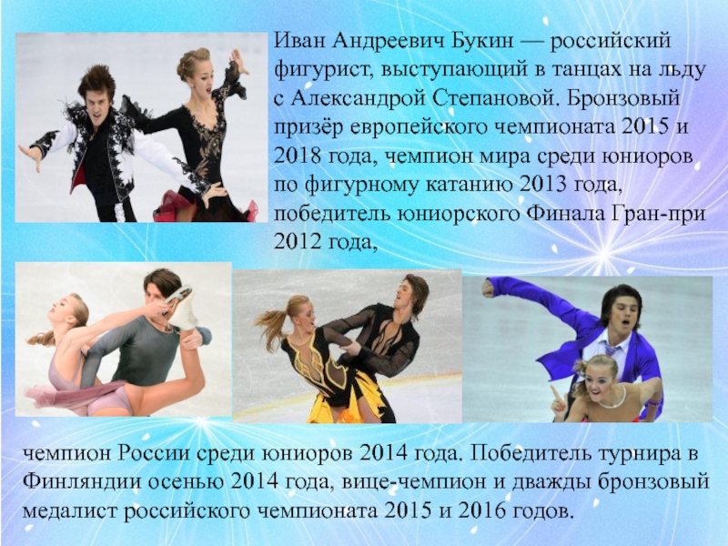 Слайд 24Иван Андреевич Букин — российский фигурист, выступающий в танцах на
