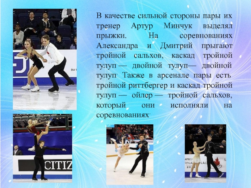 Слайд 21В качестве сильной стороны пары их тренер Артур Минчук выделял