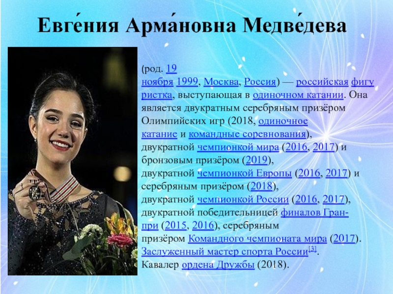 Слайд 9Евге́ния Арма́новна Медве́дева