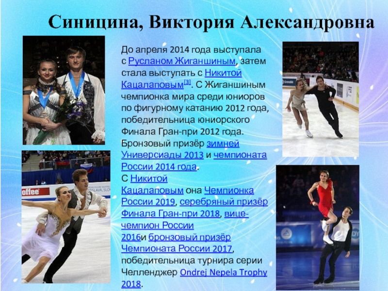 стала выступать с Никитой Кацалаповым[3]. С Жиганшиным чемпионка мира среди юниоров