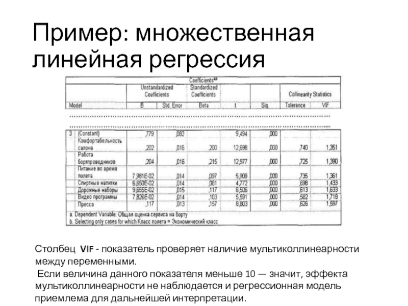 следует из значения на пересечении строки, содержащей соответствующую независимую переменную,