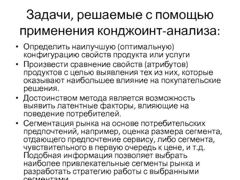 Слайд 118Задачи, решаемые с помощью применения конджоинт-анализа: