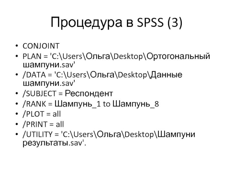 Количественный анализ полученных данных - с помощью процедуры совместного (конджоинт) анализа в программе IBM SPSS составить оптимальный для потребителя профиль упаковки шампуня.