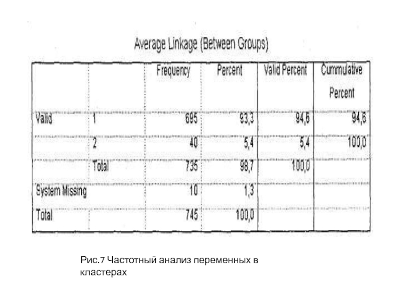 Слайд 110Рис.7 Частотный анализ переменных в кластерах
