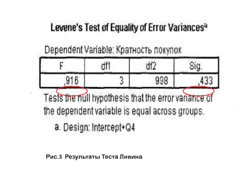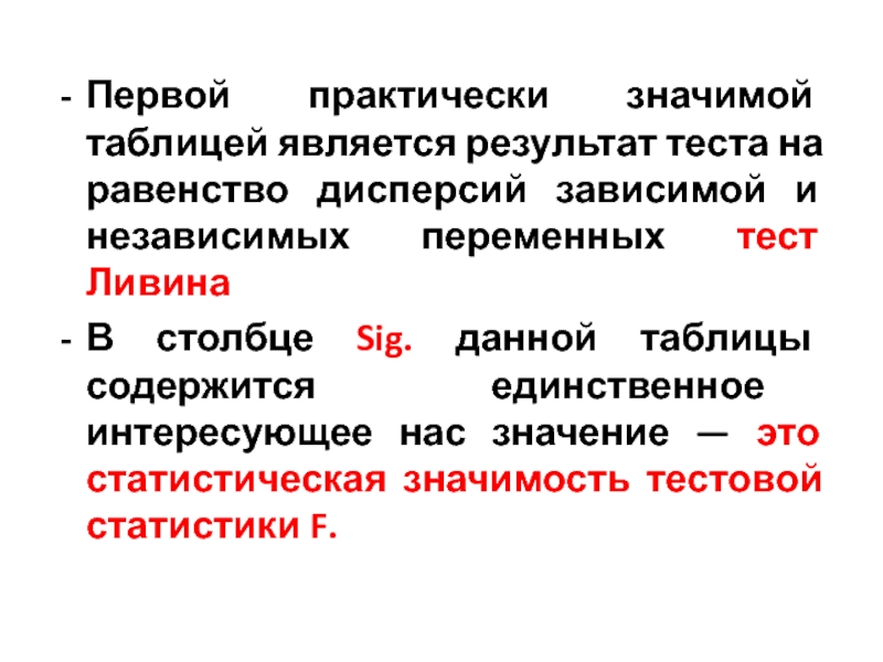 Слайд 20Первой практически значимой таблицей является результат теста на равенство дисперсий